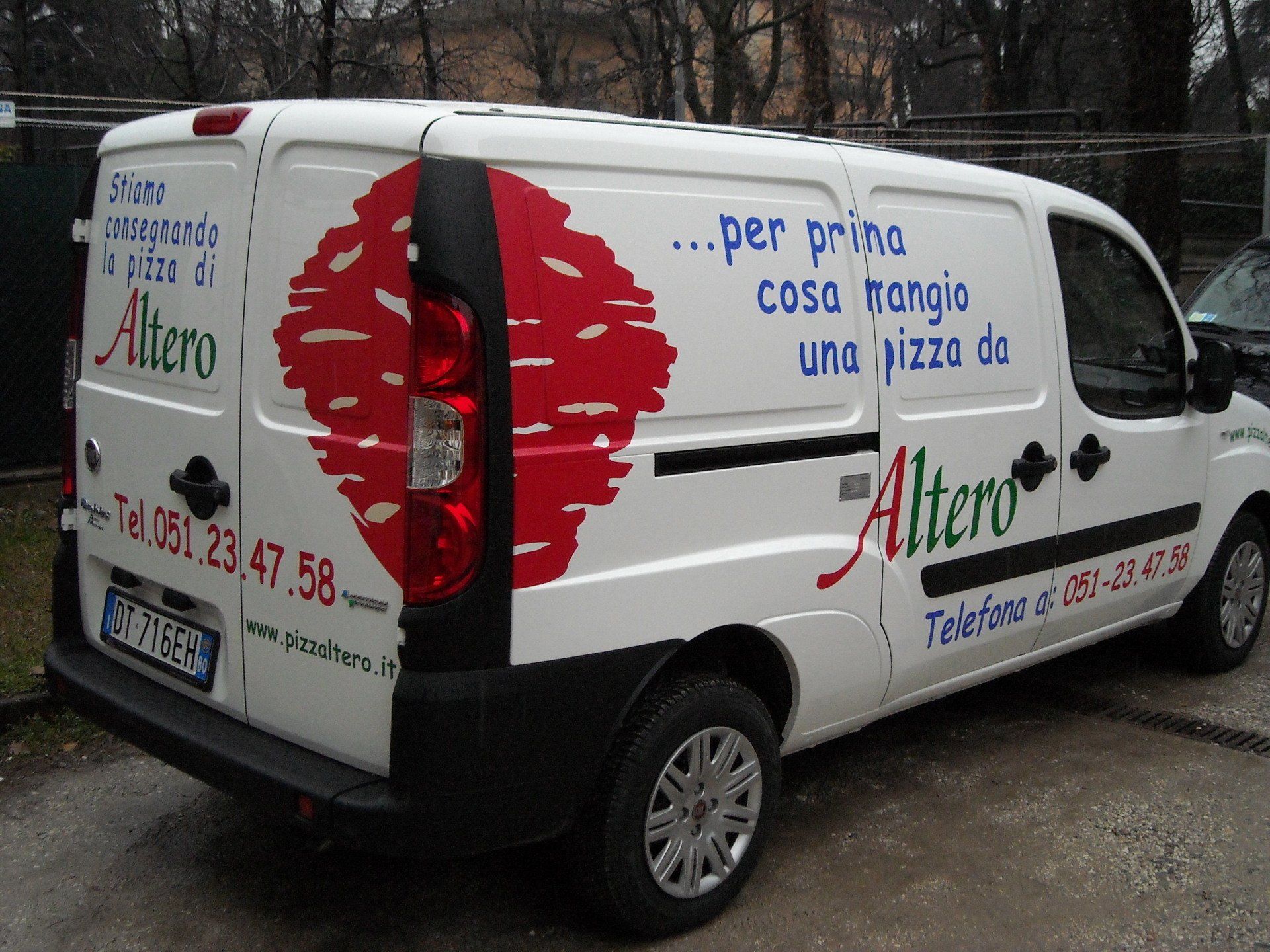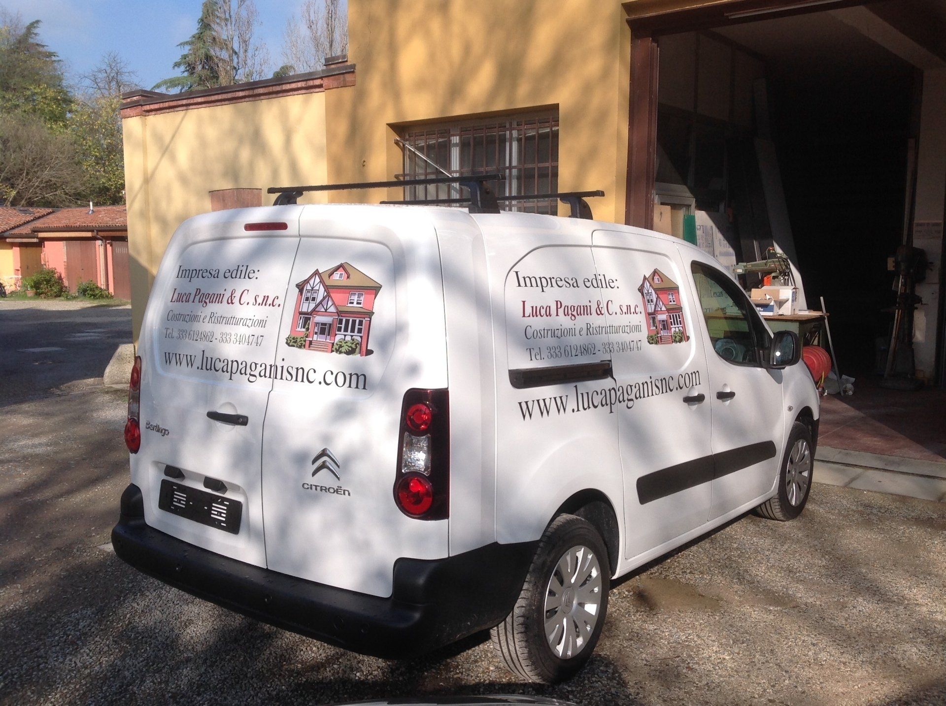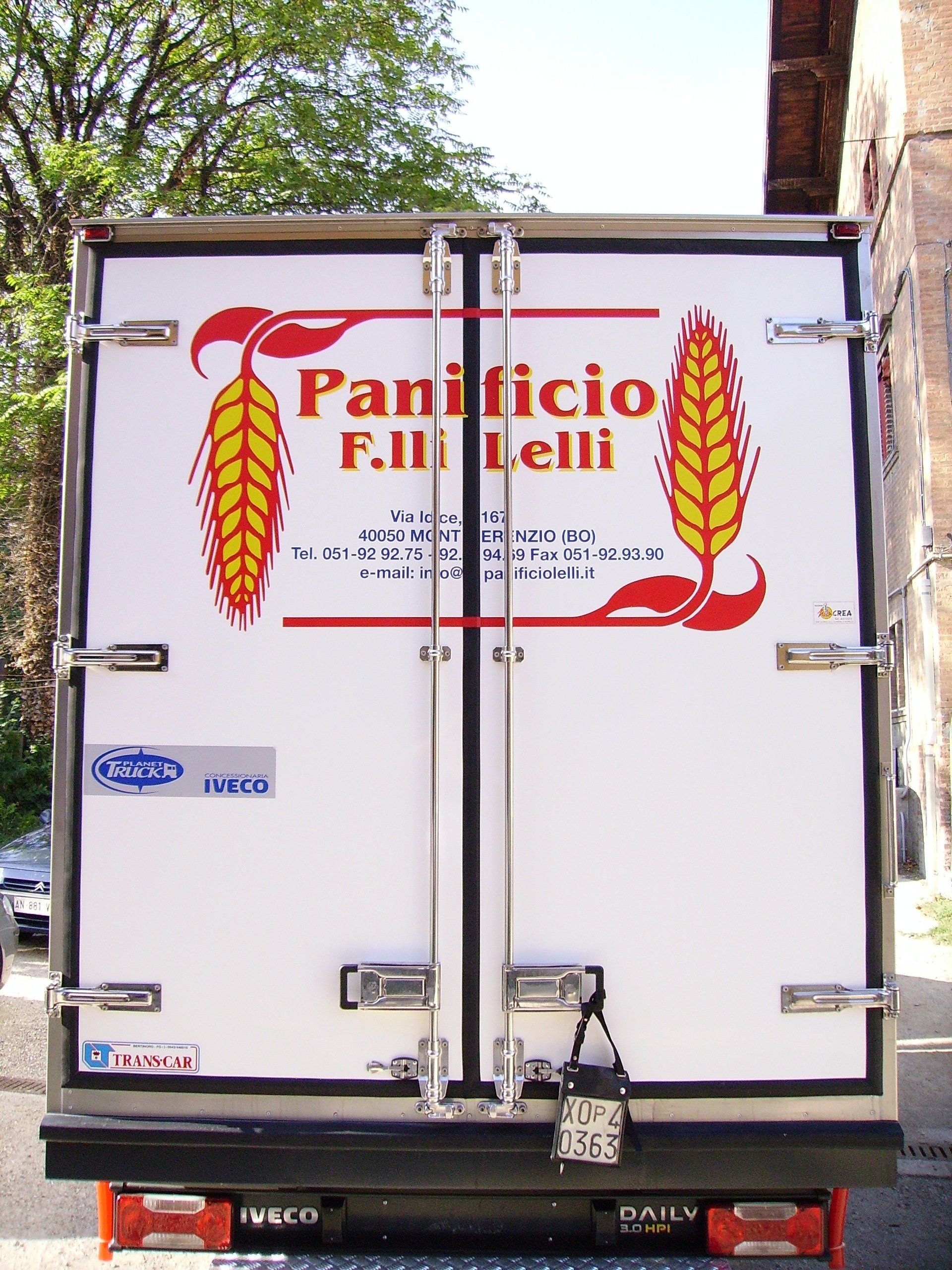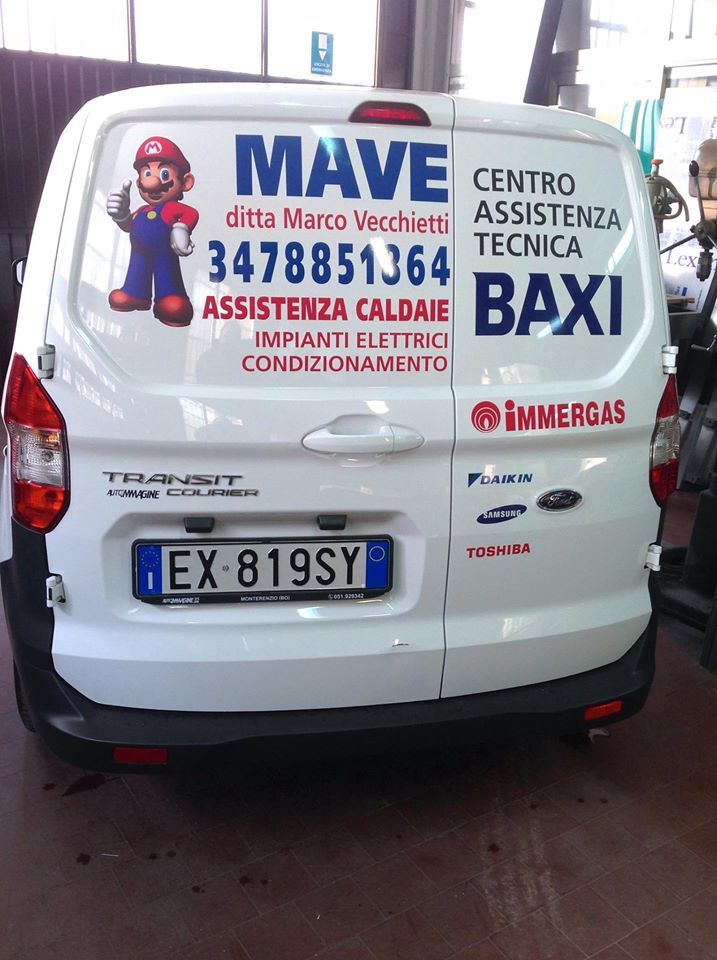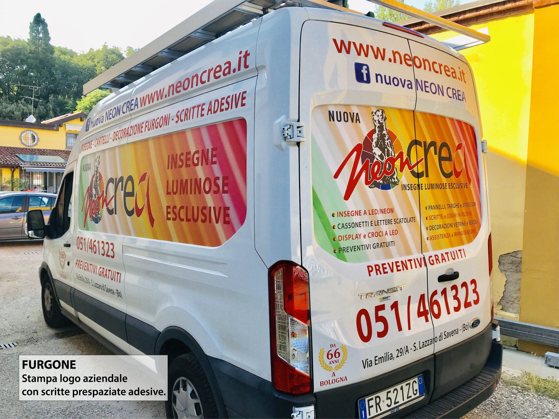 Non solo insegne luminose, ma anche produzione di stampe adesive personalizzate da applicare su automezzi, veicoli commerciali, furgoni e moto.