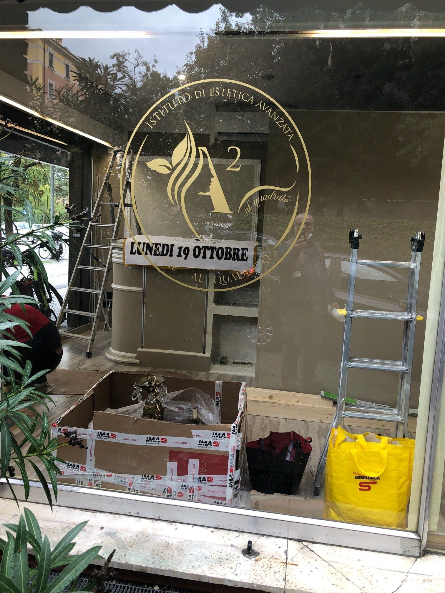 Nella nostra sede di San Lazzaro di Savena, in provincia di Bologna, abbiamo le competenze e gli strumenti per creare vetrofanie adesive, scritte adesive prespaziate, da applicare sul muro o sulle vetrine, e coperture adesive di colore sabbiato, argento e oro da applicare sui cristalli delle vetrine.