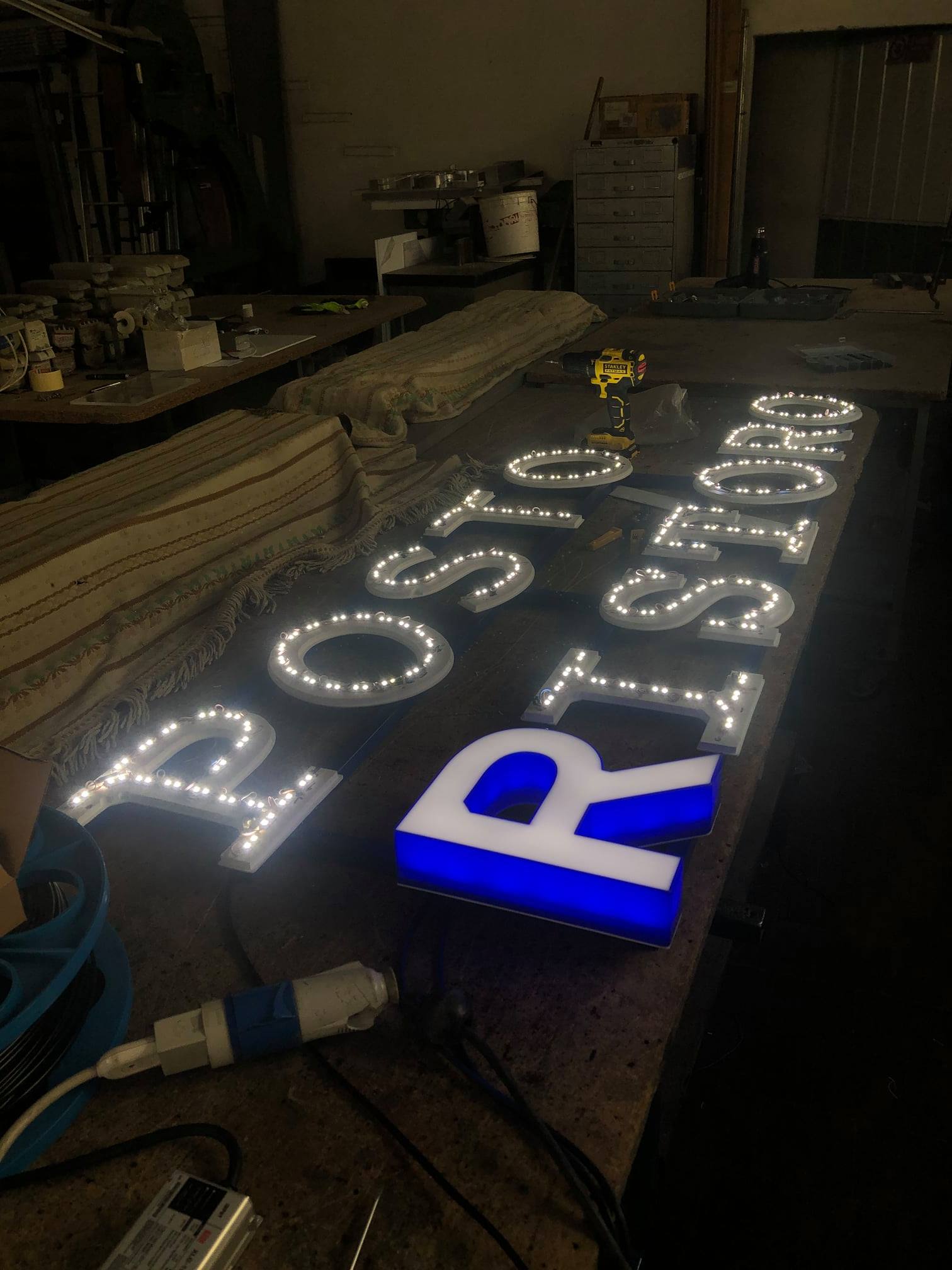 Presso il nostro laboratorio artigianale Nuova Neon Crea a San Lazzaro di Savena, nei pressi di Bologna, realizziamo lettere luminose a luce diretta o indiretta. Siamo in grado di creare scritte con diversi caratteri e di ogni dimensione, a seconda del tipo di insegna che volete per la vostra attività commerciale. Sfogliate le gallerie fotografiche in questa pagina per vedere alcune delle nostre produzioni e contattateci per ogni richiesta.